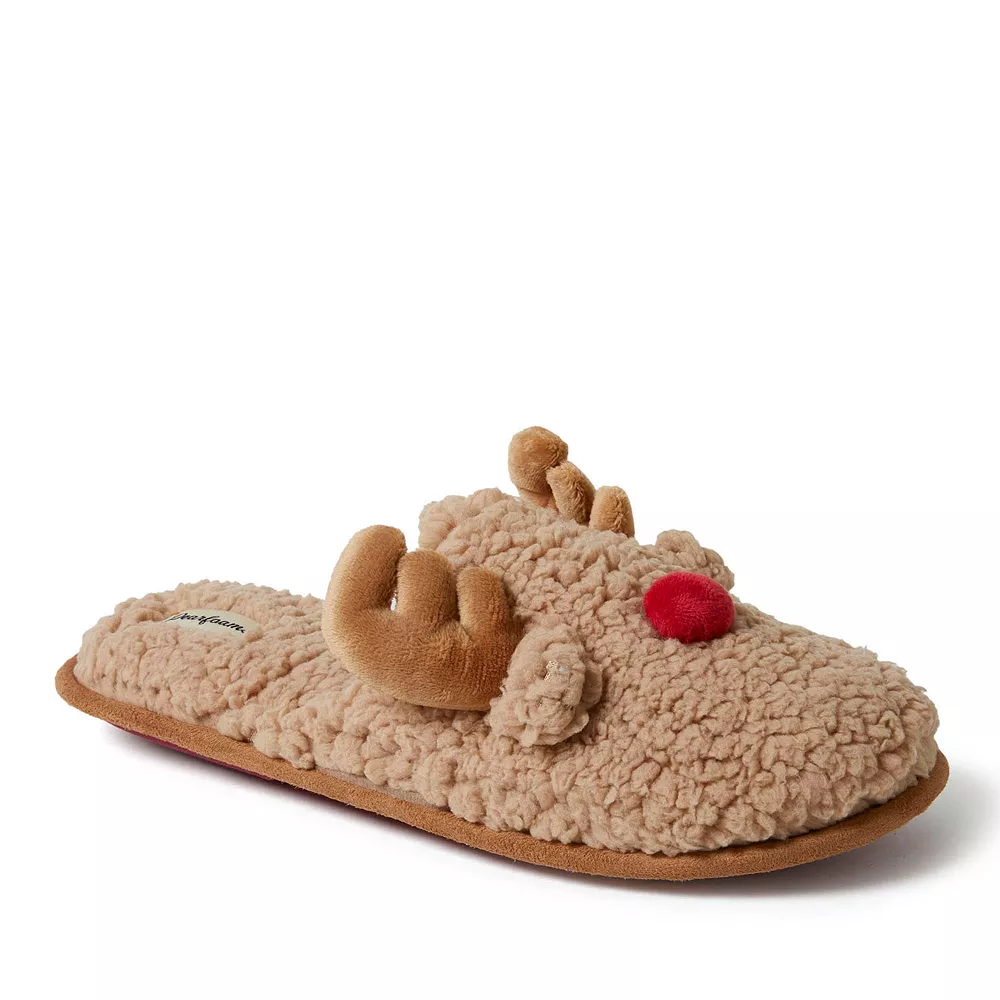 Kick back, relax, and celebrate the holidays in style with these charming Men’s Dearfoams Men’s Reindeer Scuff Slippers!