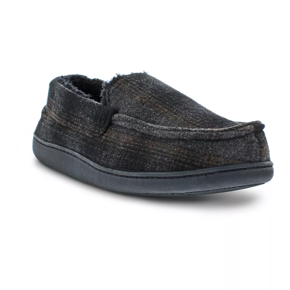 These Men’s Eddie Bauer Simulated Wool Plaid Moccasin Slippers are the perfect mix of warmth and durability.