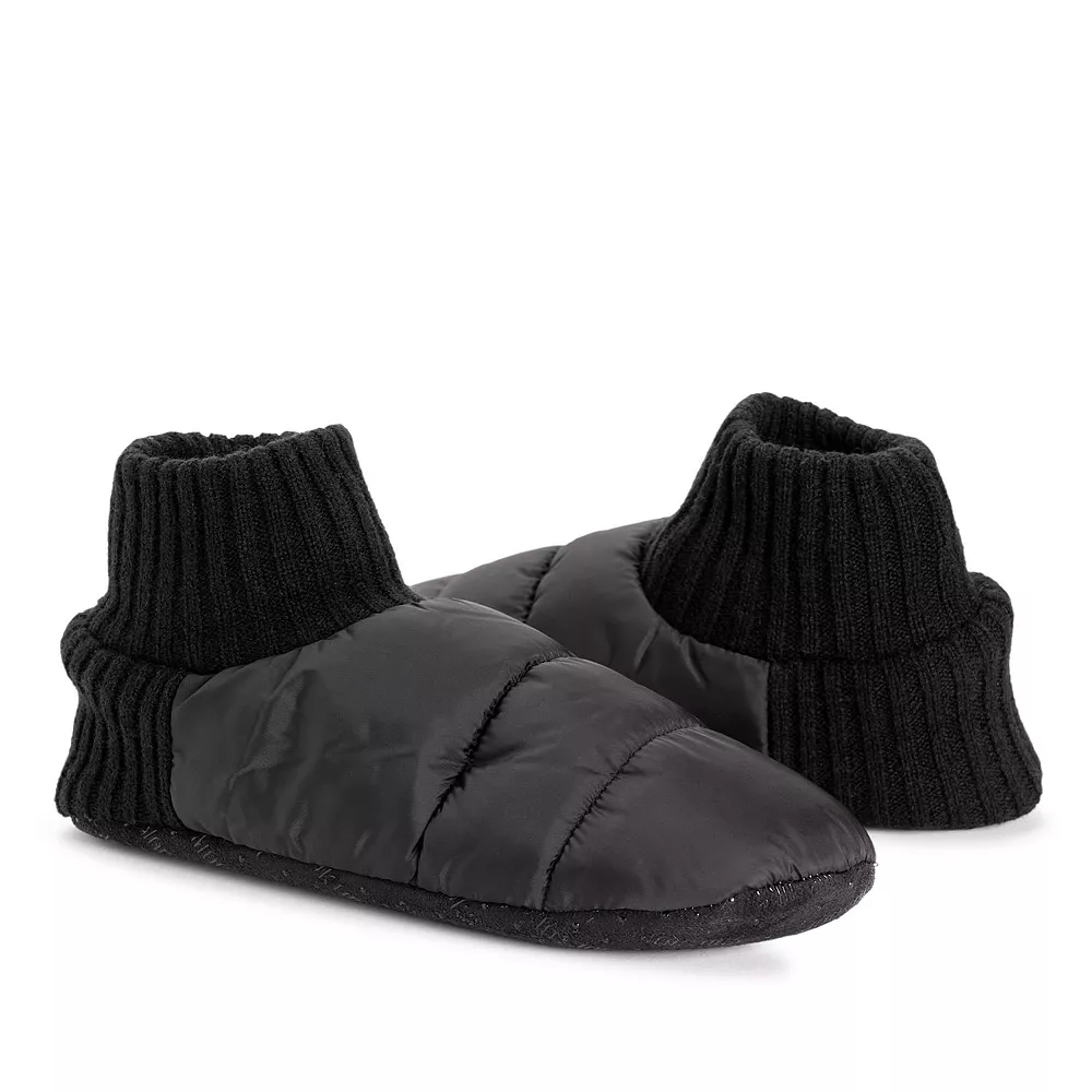 These Men’s MUK LUKS Quilted Slipper Booties have stretchy knit fabric to allow for easy on and off.