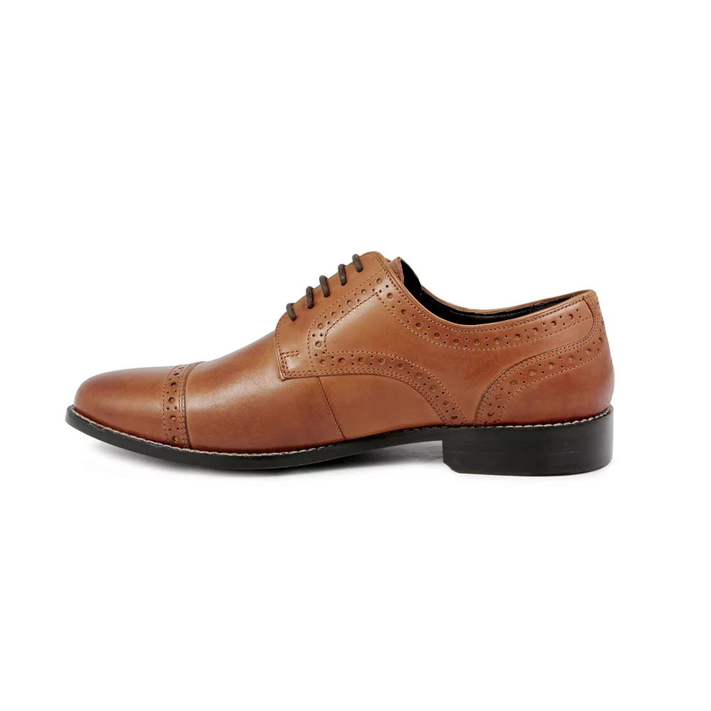 These Nunn Bush Norcross brogue-accented cap toe oxfords support impact and lasting comfort with the Comfort Gel footbed.