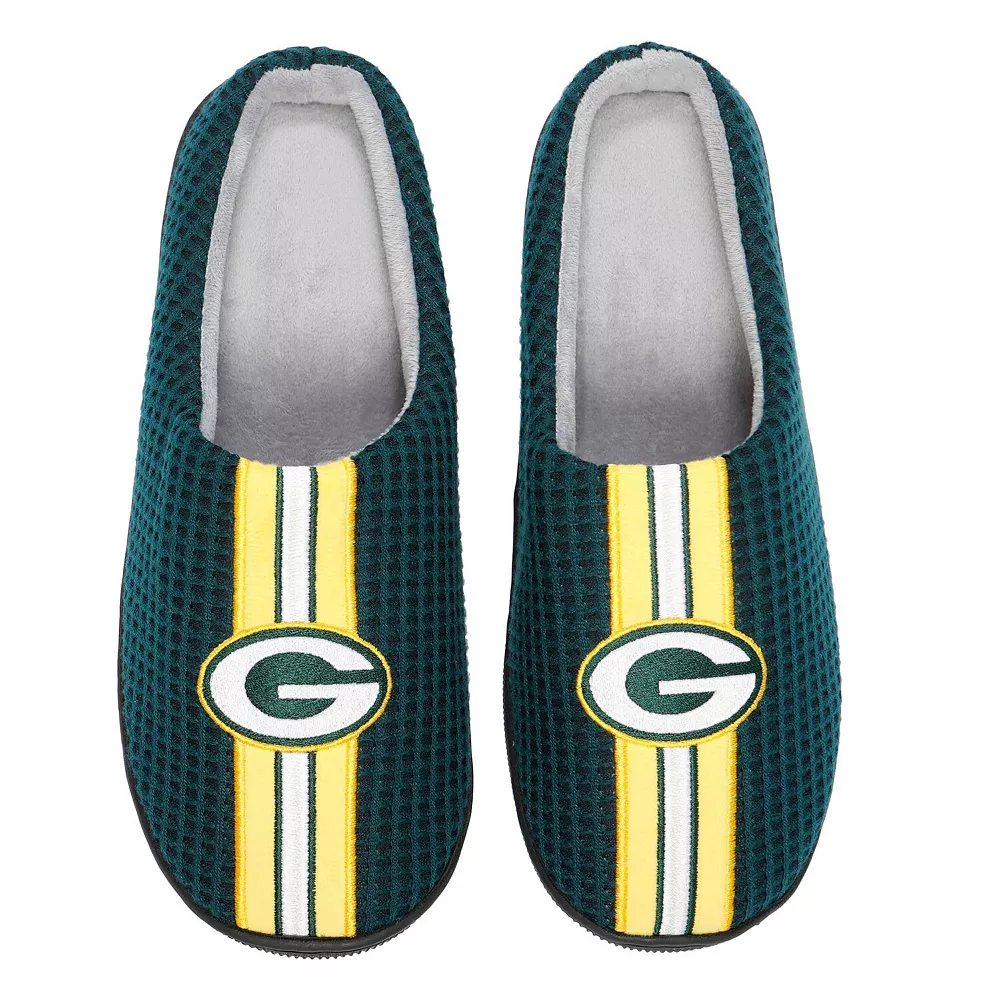 Stay comfortable as you cheer on the Green Bay Packers in these Team Stripe slide slippers from FOCO. They offer soft memory foam for optimal levels of comfort as well as closed toes for coverage. Plus, the vibrant Green Bay Packers colorway and graphics showcase your unwavering fandom in cozy style.